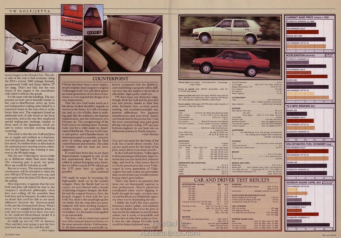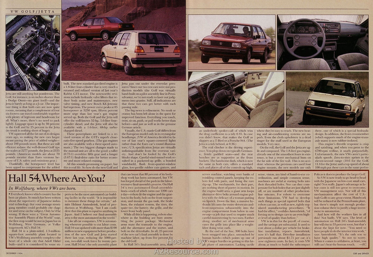 Car & Driver- 1985 Golf & Jetta Preview