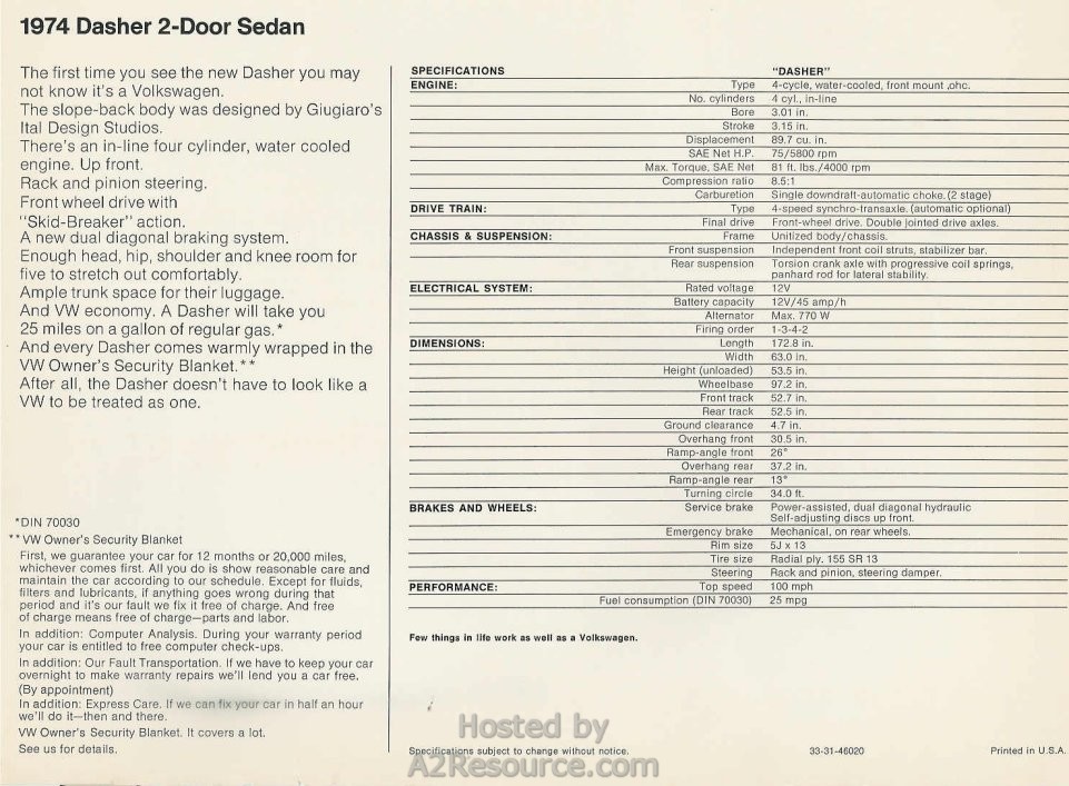 1974 Dasher 2 Door Sedan Back