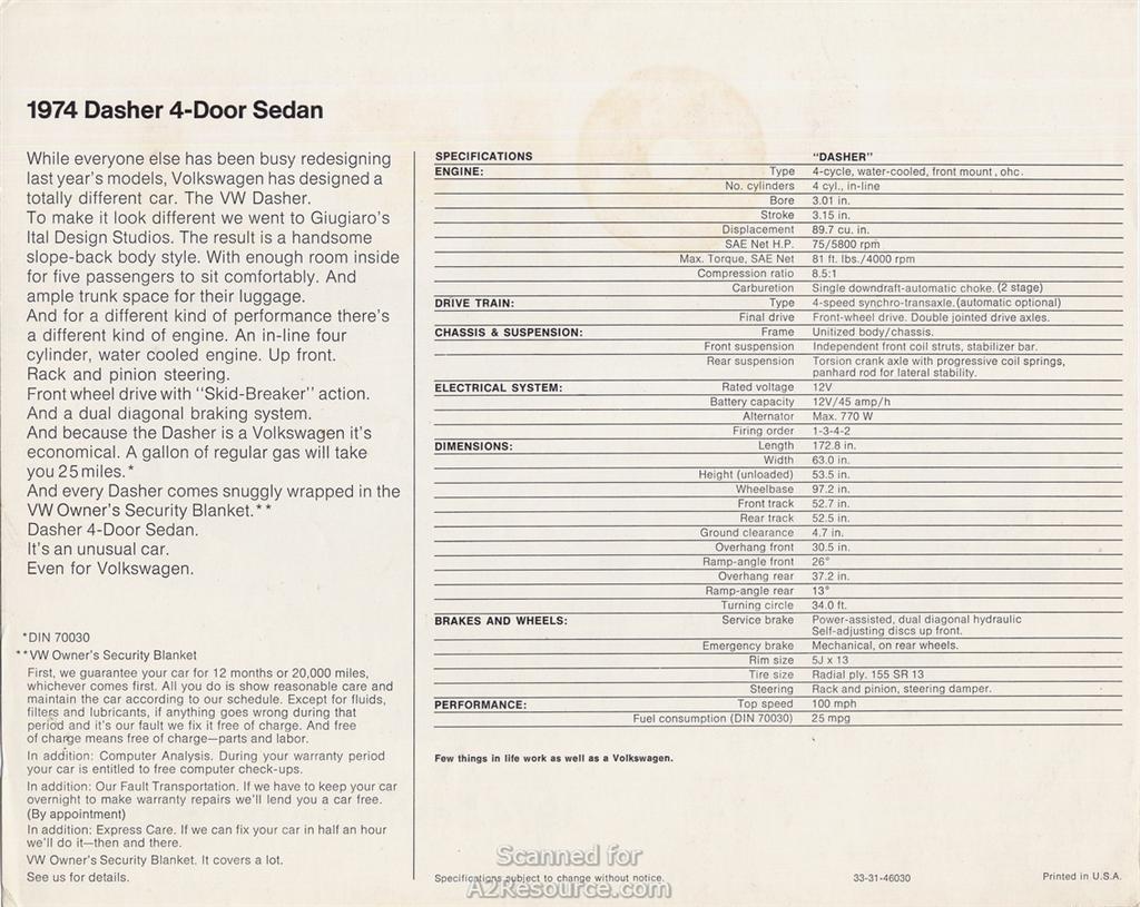 1974 Dasher 4 Door Sedan Back