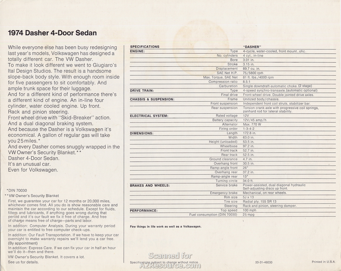 1974 Dasher 4 Door Sedan Front