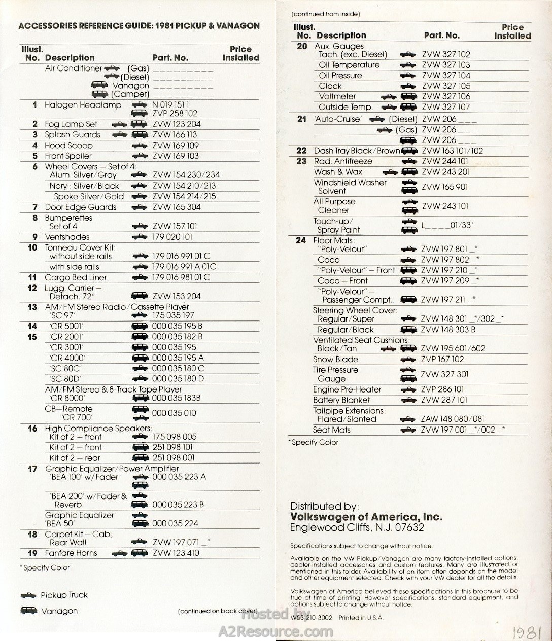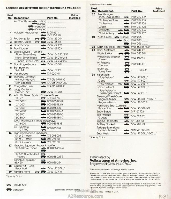 Vanagon & Pickup Accessories