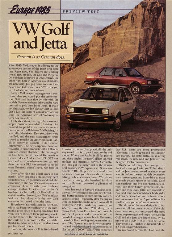 Car & Driver- 1985 Golf & Jetta Preview